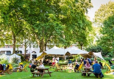 Our unique private hire spaces are available during Summer in the Square, 7-12 July, in beautiful Portman Square Garden. The spaces are sectioned off from the public event with capacity of up to 250 attendees, food and drink packages and cover in case of rain. It’s a great opportunity to host a memorable event in a truly unique venue with very reasonable hire fees!